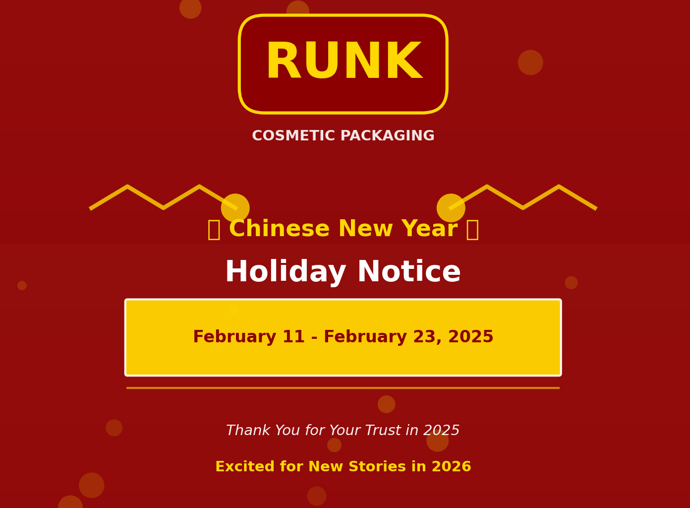 บริษัท Runk Cosmetic Packaging ประกาศตารางวันหยุดตรุษจีนปี 2026